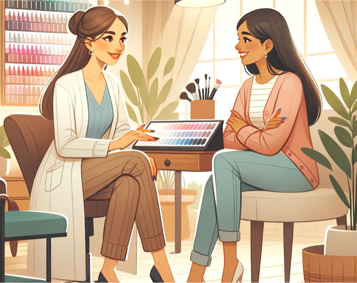 Wir nehmen uns gerne Zeit für Sie und Ihre Nagelwünsche. In entspannter Atmosphäre beraten wir Sie persönlich zu Shape, Farbe und Pflege.
